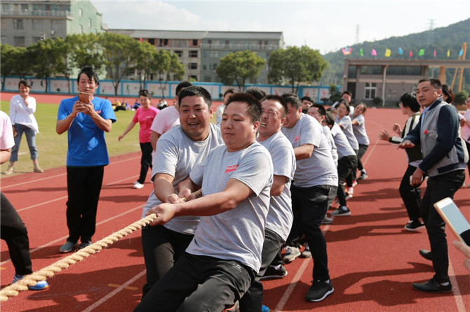 “拔河”作為運動會的壓軸項目,也是精彩萬分。每個參賽運動員們為了團隊榮譽用盡全身的力氣與對手頑強拼搏,特別是當雙方勝負難分的時刻,盡管他們此時都已經大汗淋漓,身心疲憊,但是他們仍毫不退縮,而是咬緊牙關,堅持到底,從他們身上看到了頑強的毅力和拼搏精神。圍觀的運動員都變成了臨時啦啦隊,為正在參賽的隊員吶喊助威。“拔河”比賽充分體現了運動員們堅強,勇敢,團結協作的精神。經過多輪比賽,最終由模具產業隊獲得“拔河”單項比賽第一名。