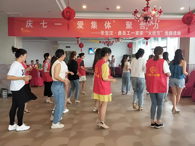 在中國共產黨成立98周年之際,為了提倡廣大員工愛國家、愛集體、愛家庭的良好風氣,匯聚起員工敬崗愛業、認真干事正能量,同時為了關愛、豐富員工的業余生活,華寶公司黨支部、工會聯合行政中心、供應鏈管理中心組織主題為:慶七一 愛集體 聚合力一一華寶漢·彝各族員工一家親“火把節”黨群活動,參加活動的有少數民族員工70多人以及全體黨員、各車間主管級以上和后勤人員等,總計參加人數近百人,讓少數民族同胞感受到了黨的溫暖,家的歸屬感!